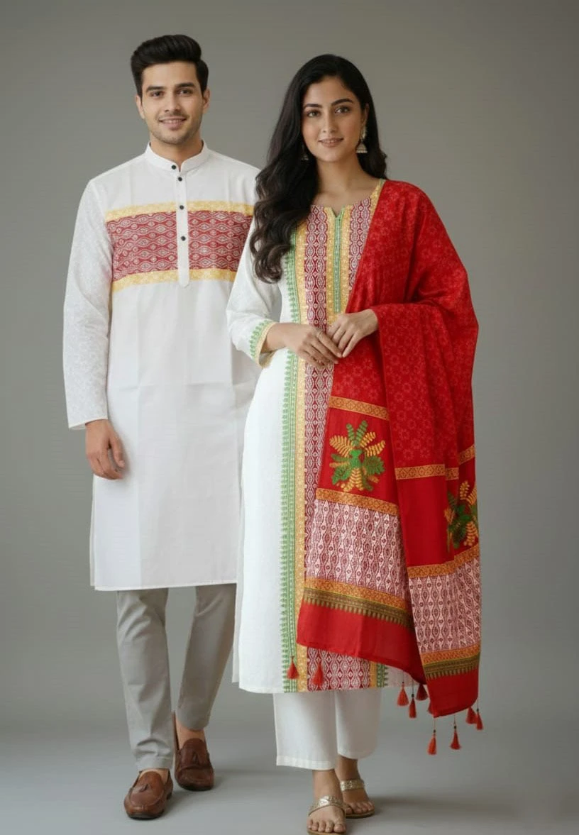 Panjabi Three Piece Couple Set